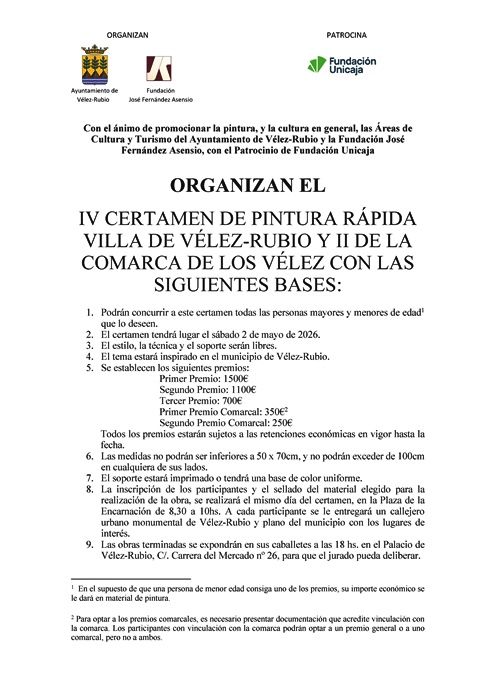 Se celebrará celebrar el próximo día 2 de mayo.  Para mayor información consultar la bases del certamen a través del Facebook e Instagram, José F. Asensio y fundacionjosefernandezasensio.  en la web del ayuntamiento velezrubio.es y para cualquier duda e través del WhatsApp 662346235.
